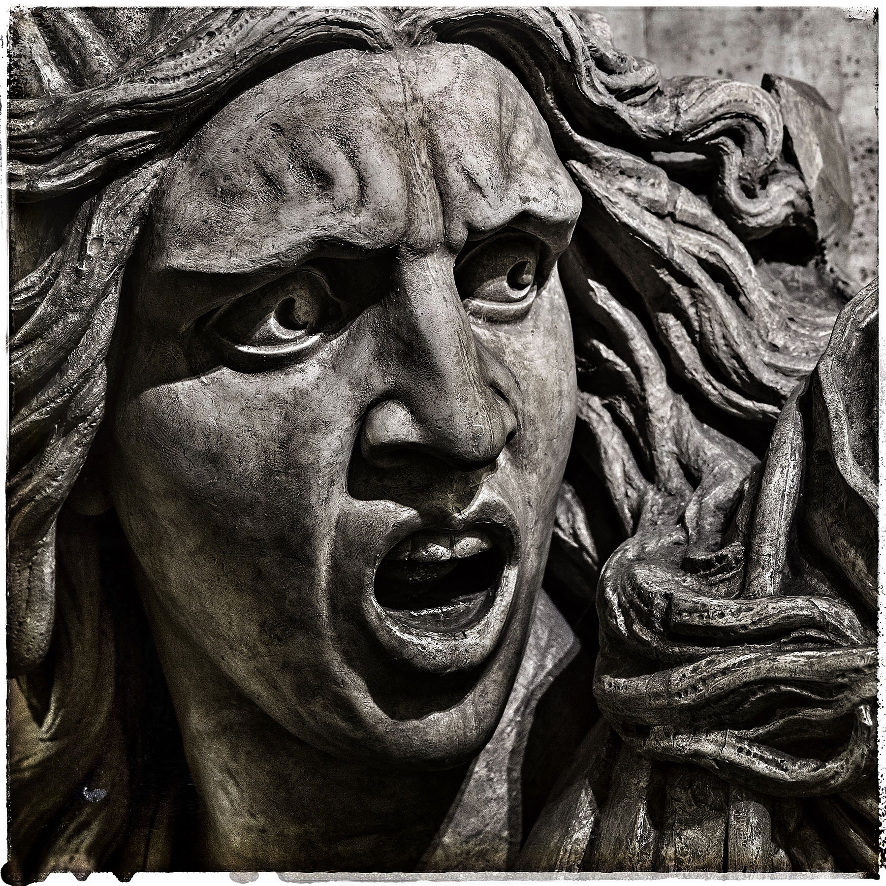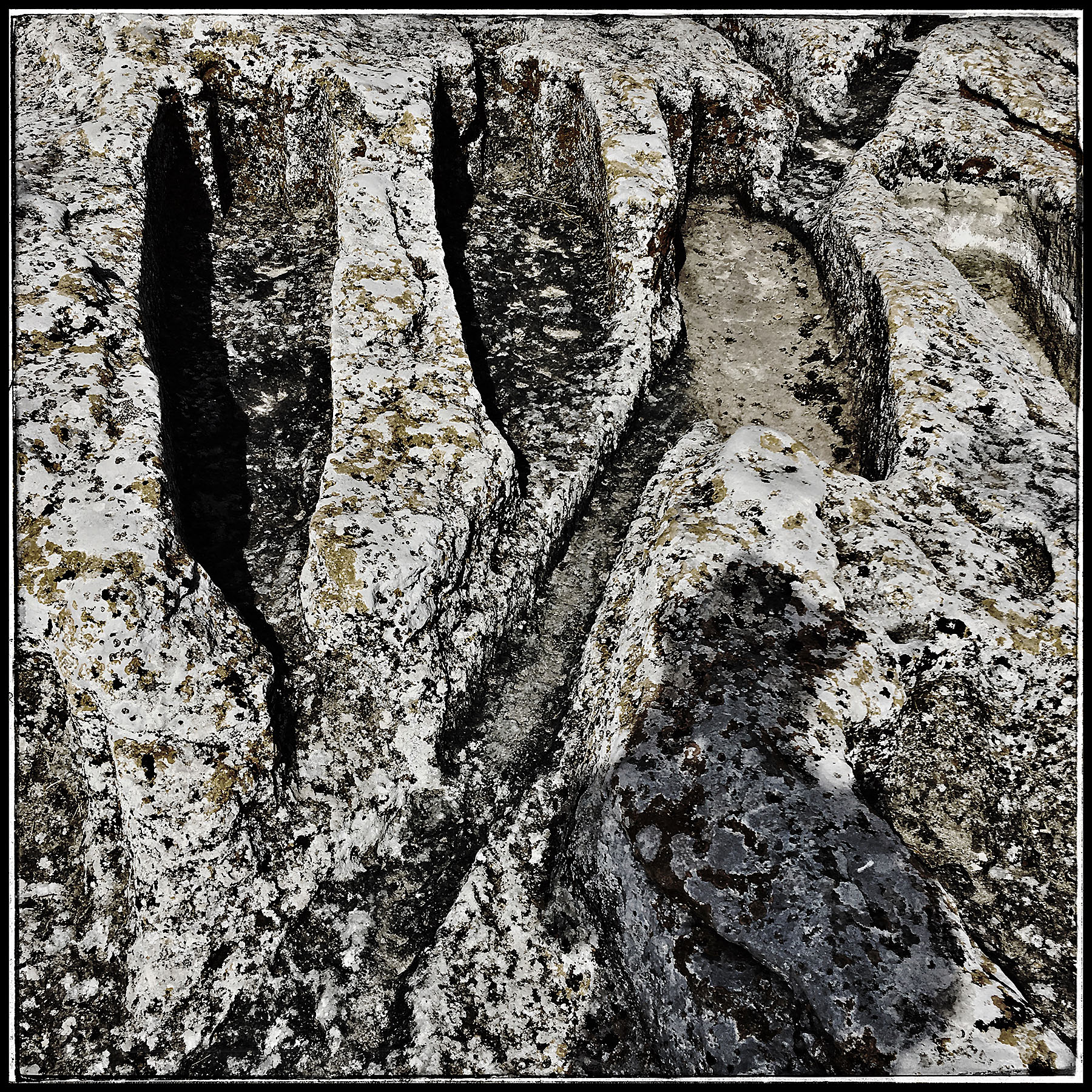 Même en couleur, la pierre aux mille nuances de gris s’aime en noir et blanc. Brute ou sculptée, tavelée, polie ou friable, elle est le sceau et la trace du temps qui passe.
